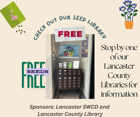 The Lancaster Soil and Water Conservation District's Sowing Seeds Program provides native/ heirloom vegetable and wildflower seeds to Lancaster County residents. We have partnered with the Lancaster County Library. Stop by one of the Lancaster County Libraries and check out the Seed Library.
